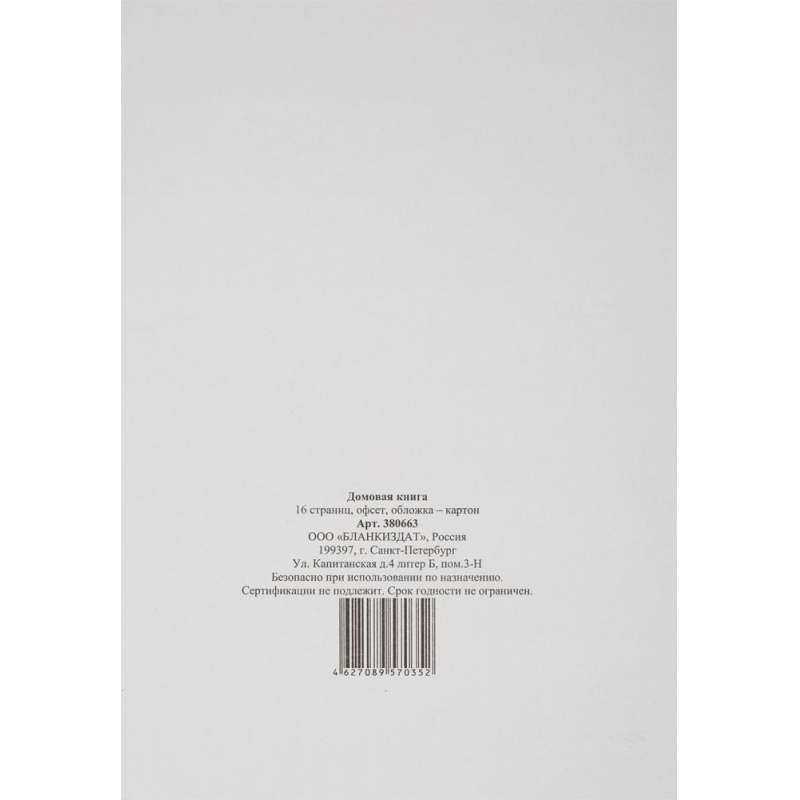 Бух книги Домовая книга (поквартирная) 16 лист., офсет.