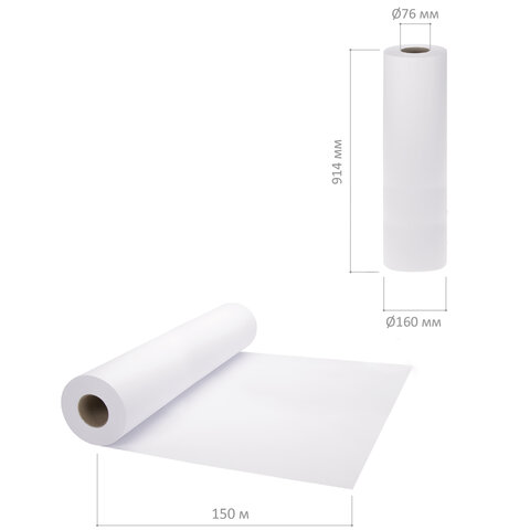Рулон для плоттера, 914 мм х 150 м х втулка 76 мм, 80 г/м2, белизна CIE 146%, BRAUBERG, 110636