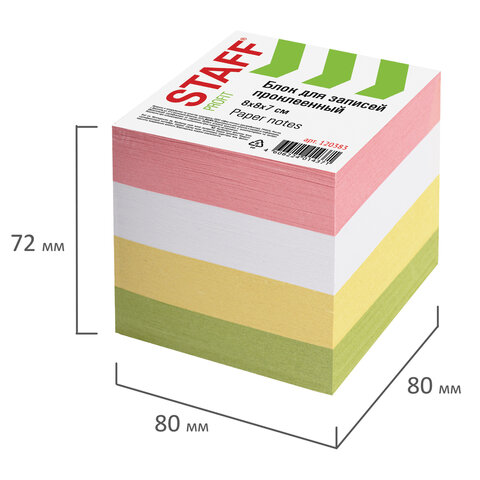 Блок для записей STAFF, проклеенный, куб 8х8 см, 800 листов, цветной, чередование с белым, 120383