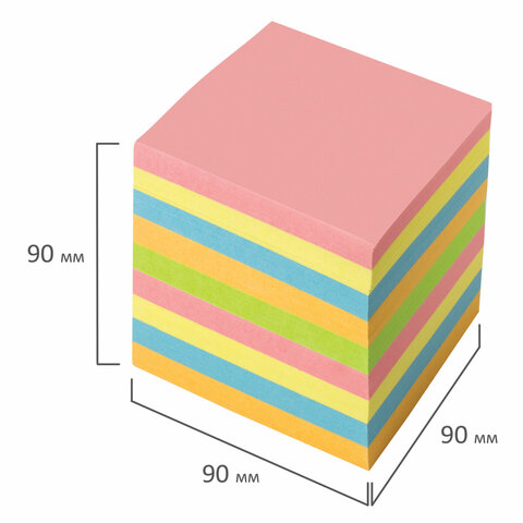 Блок для записей BRAUBERG проклеенный, куб 9х9х9 см, цветной, 129207