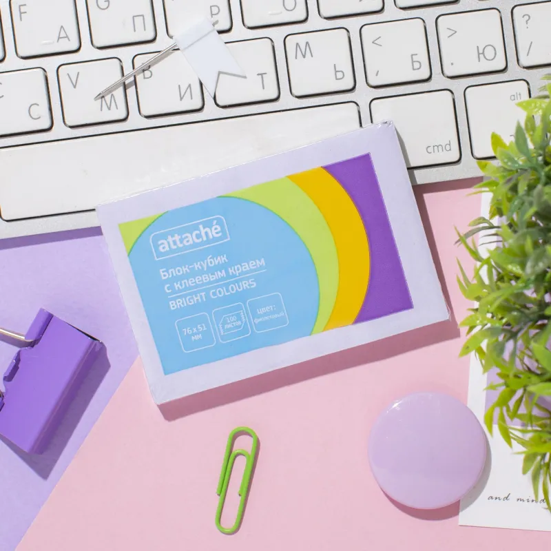 Стикеры ATTACHE Bright colours с клеев.краем 76х51 фиолетовый 100л