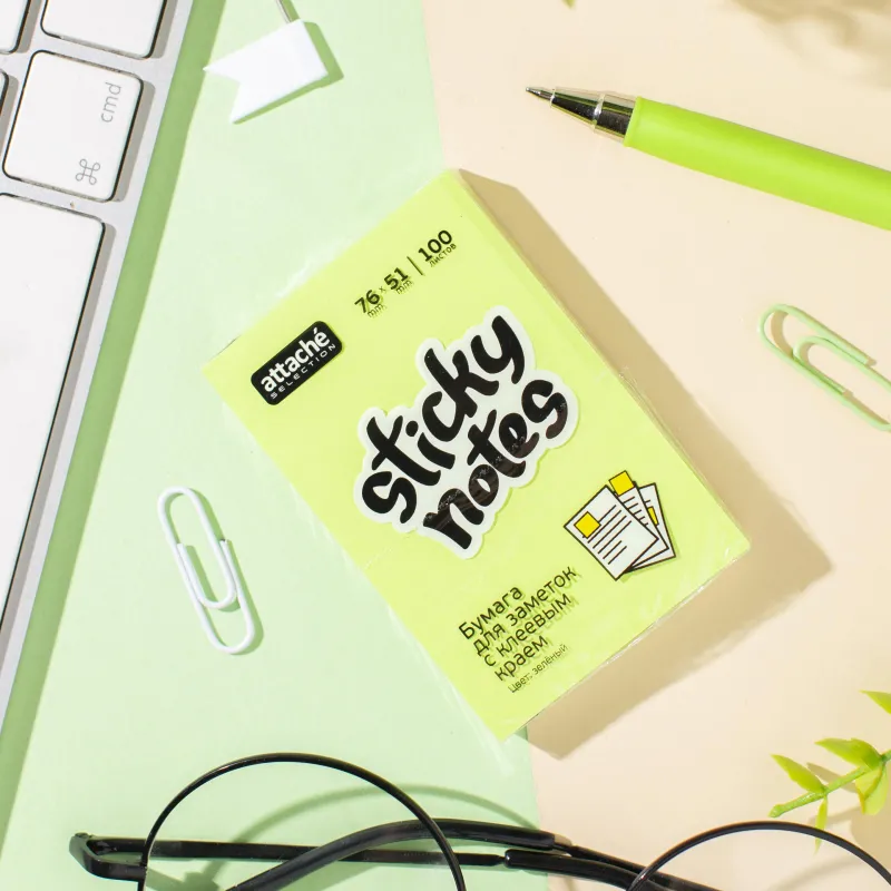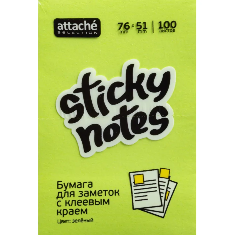 Стикеры Attache Selection 76x51 мм неоновые зеленые (1 блок, 100 листов)