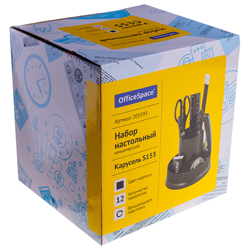 Настольный органайзер OfficeSpace "Карусель", 12 предметов, вращающийся, черный