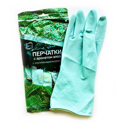 Перчатки МНОГОРАЗОВЫЕ латексные с ароматом АЛОЭ зеленые, хлопчатобумажное напыление, размер L (больш
