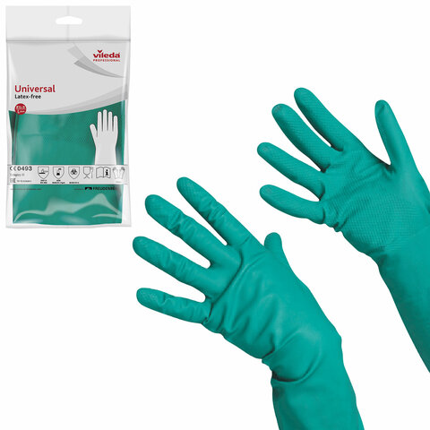 Перчатки хозяйственные нитриловые VILEDA, универсальные, антиаллергенные, размер L (большой), зелены