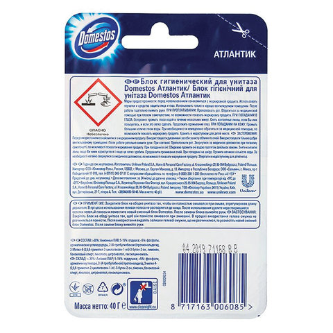 Блок туалетный подвесной твердый 40 г DOMESTOS (Доместос) "Атлантик", основной блок