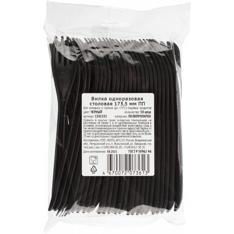 Вилка одноразовая черная 173.5 мм 50 штук в упаковке