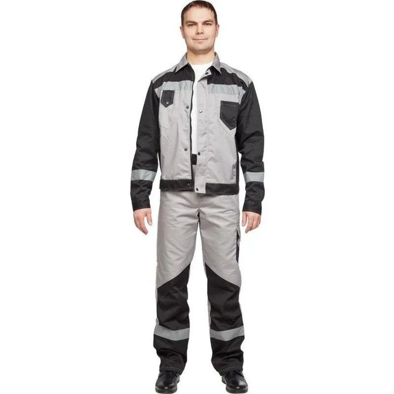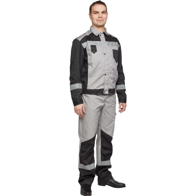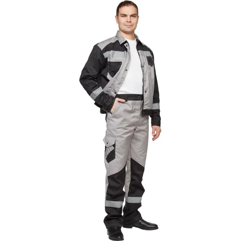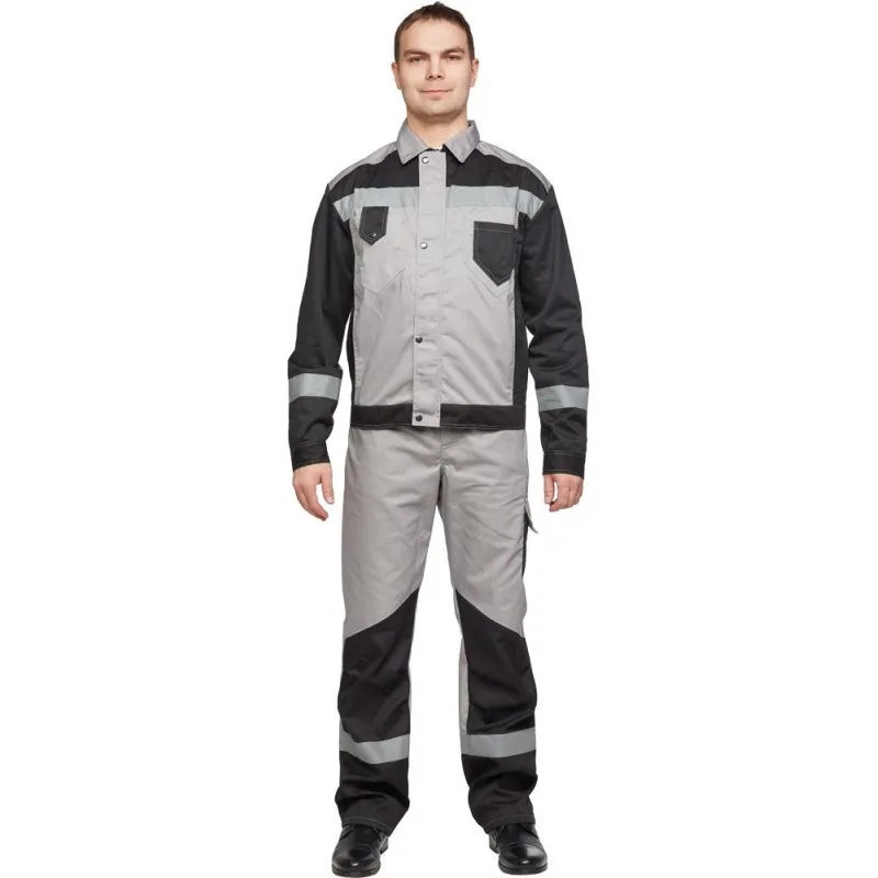 Костюм рабочий летний мужской л21-КБР с СОП серый/черный (размер 48-50, рост 182-188)