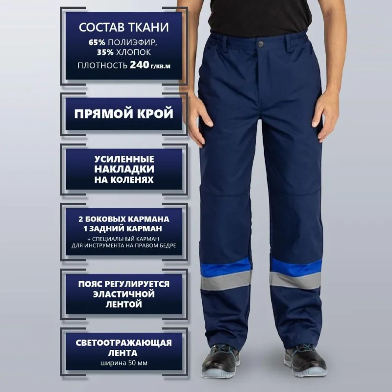 Брюки рабочие летние муж Ларга л43-БР син(48-50) 182-188(серия Л)