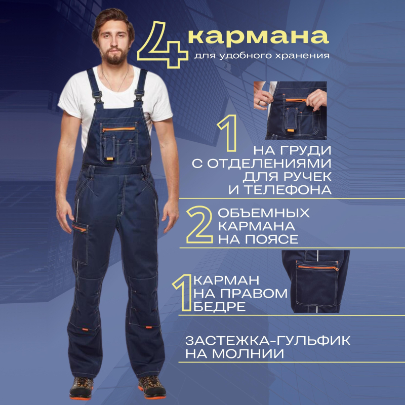 Полукомбинезон муж. л34-ПК т.син/вас (р.44-46) 182-188 (мод.ПК208)