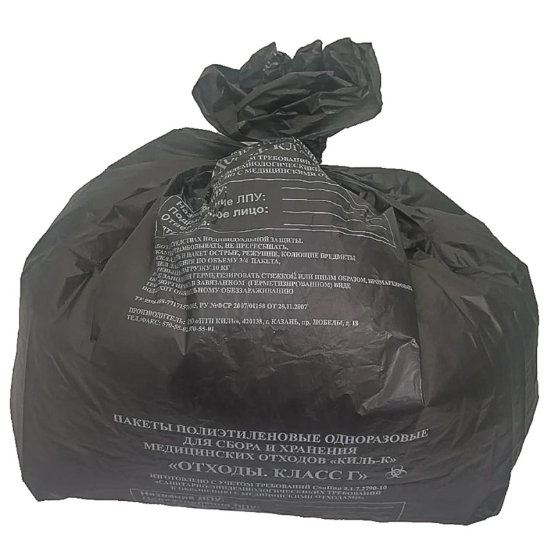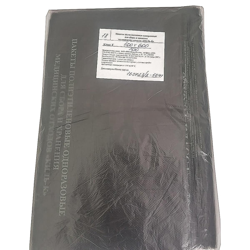Пакет для мед.отходов кл.Г черный 500х600х18мкм, 30 л,100 шт/уп, ПТП Киль