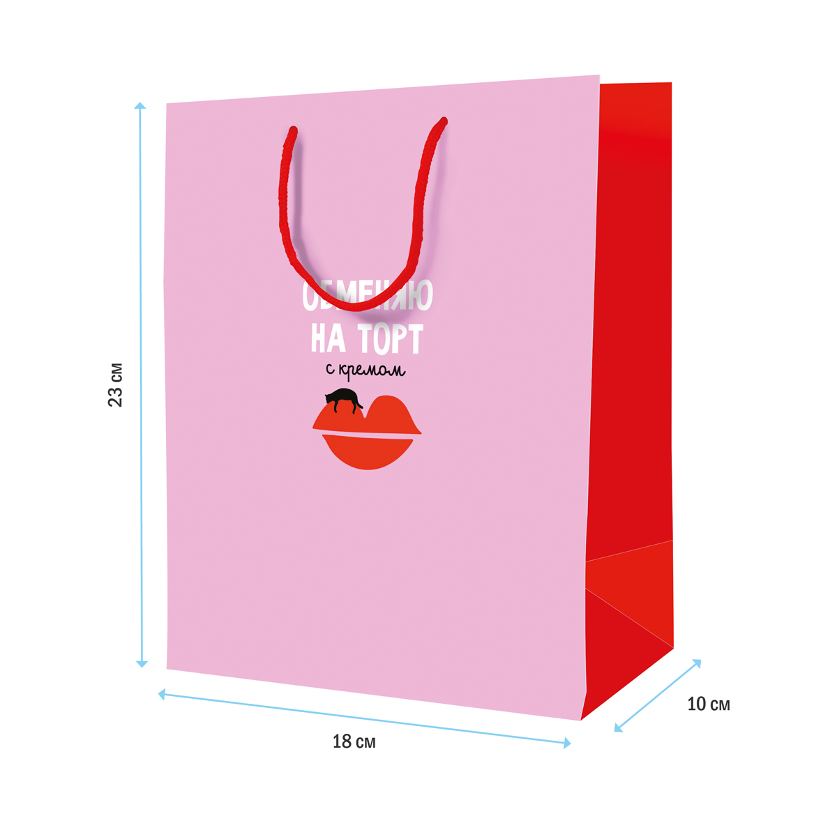 Пакет подарочный 18*23*10см ArtSpace "Обменяю на торт с кремом", ламинированный