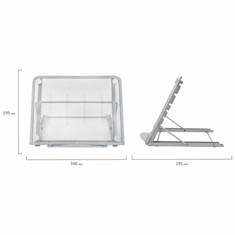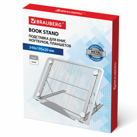 Подставка для книг, ноутбуков, планшетов BRAUBERG "Germanium", 240х195х20 мм, серебро, металл, 23798