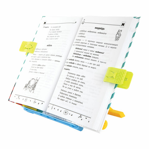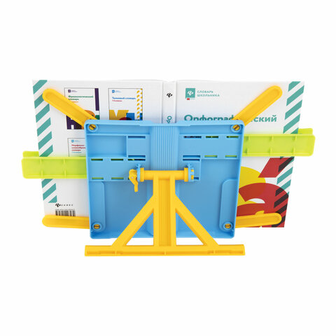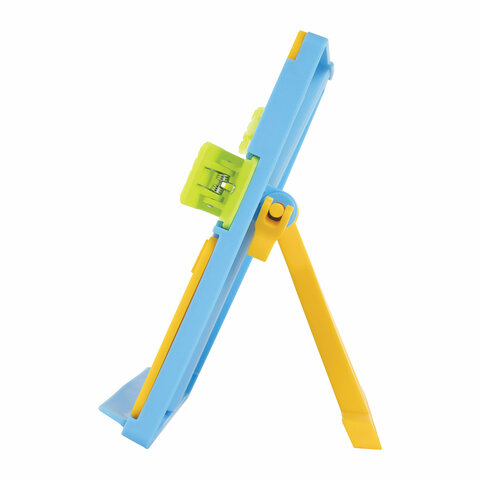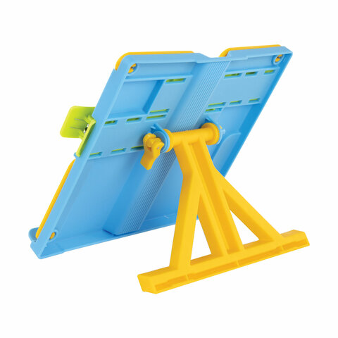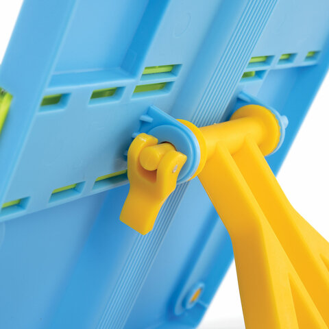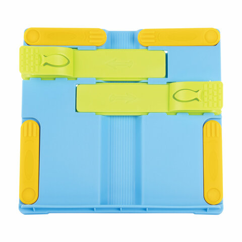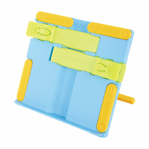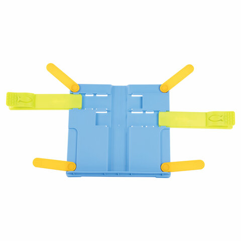 Подставка для книг ЮНЛАНДИЯ, с боковыми зажимами, регулируемый наклон, пластик, голубая, 237899