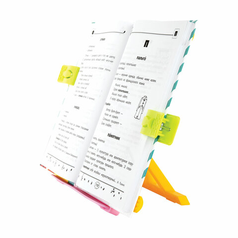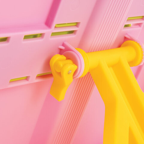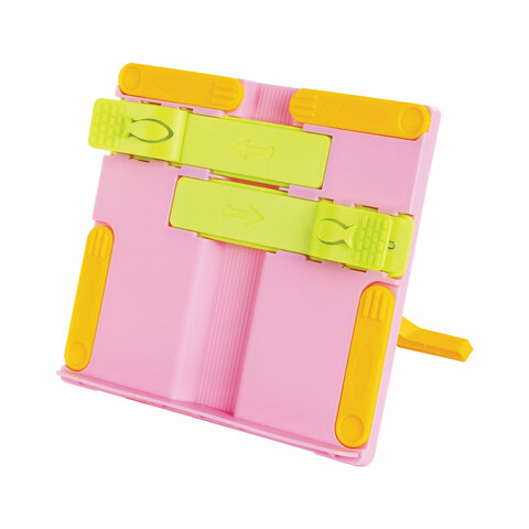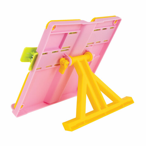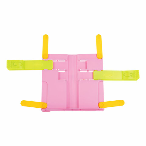 Подставка для книг ЮНЛАНДИЯ, с боковыми зажимами, регулируемый наклон, пластик, розовая, 237907