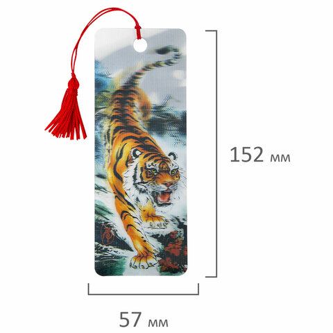 Закладка для книг 3D, BRAUBERG, объемная, "Бенгальский тигр", с декоративным шнурком-завязкой, 12575