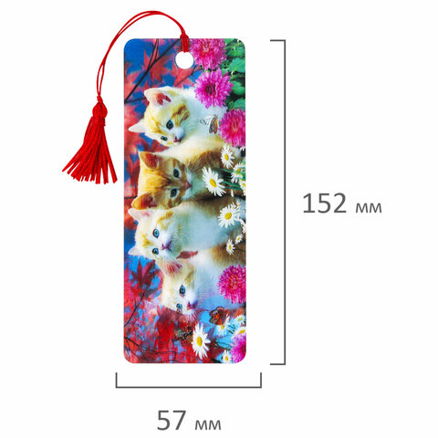 Закладка для книг 3D, BRAUBERG, объемная, "Котята", с декоративным шнурком-завязкой, 125762