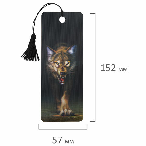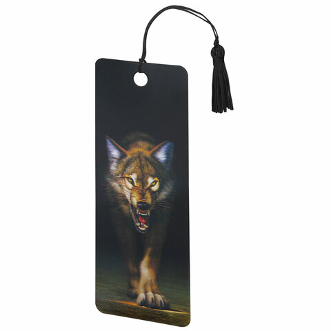 Закладка для книг 3D, BRAUBERG, объемная, "Волк", с декоративным шнурком-завязкой, 125756