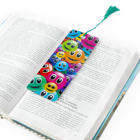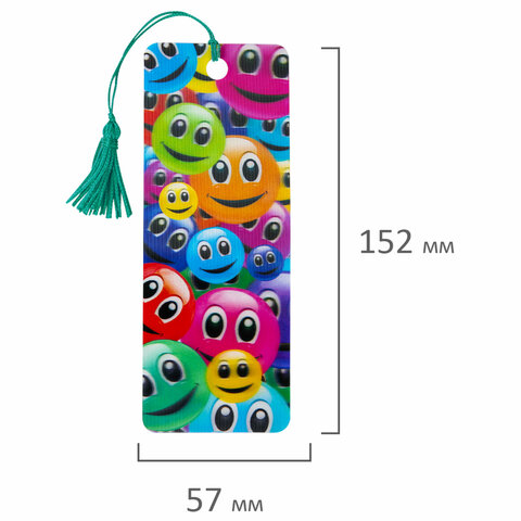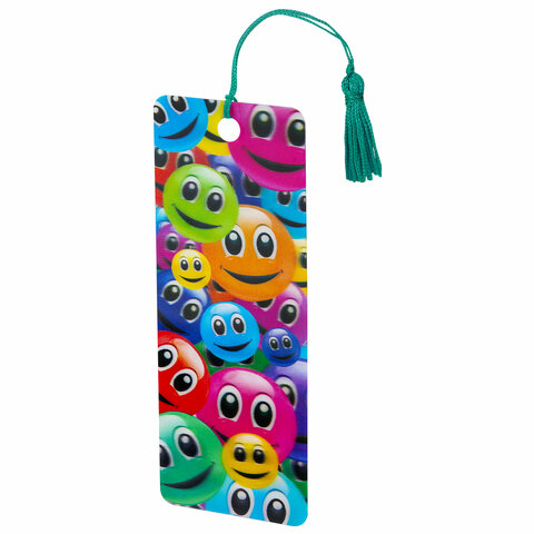 Закладка для книг с линейкой, 3D-объемная, BRAUBERG "Смайлики", с декоративным шнурком