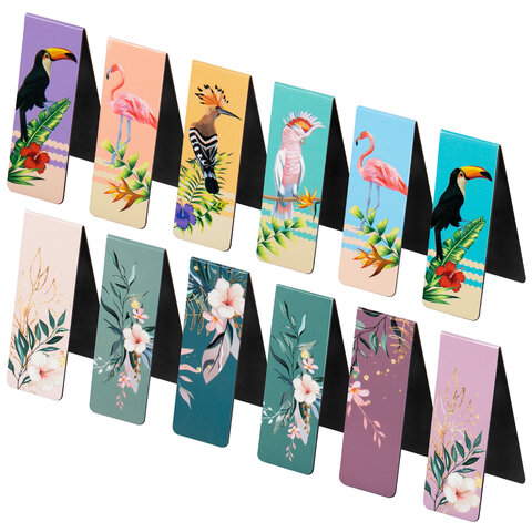 Закладки для книг МАГНИТНЫЕ, "TROPICS", набор 12 шт., 60x20 мм, BRAUBERG, 113172