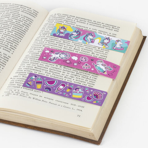 Закладки для книг с магнитом "ЕДИНОРОГИ", набор 6 шт., блестки, 25x196 мм, ЮНЛАНДИЯ, 111638