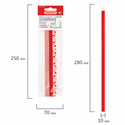 Закладки-ляссе фактурные для книг А5 (длина 28 см) "LOVE", клейкий край, 3 ленты, ПИФАГОР, 112973