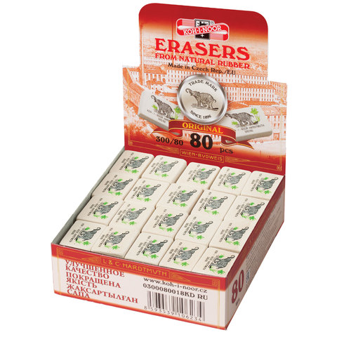 Ластик KOH-I-NOOR "Слон" 300/80, 26х18,5х8 мм, белый/цветной, прямоугольный, натуральный каучук, 030