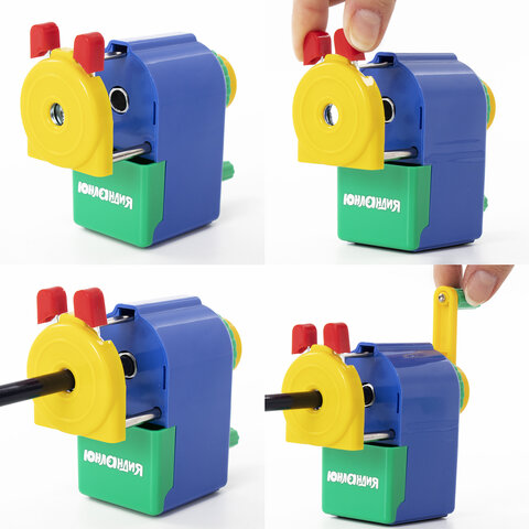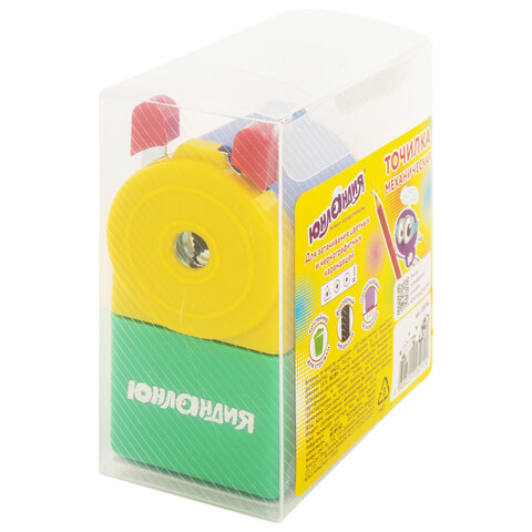 Точилка механическая ЮНЛАНДИЯ "Светофор", металлический механизм, корпус голубой, 228766
