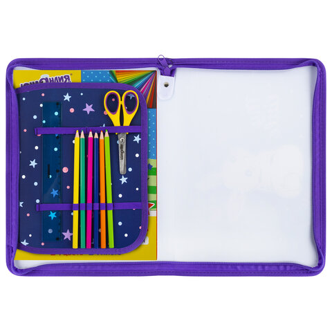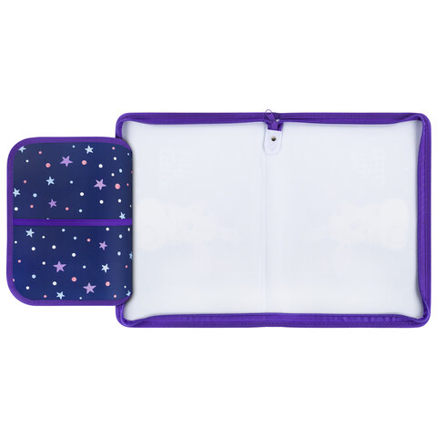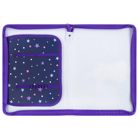 Папка для труда на молнии ЮНЛАНДИЯ А4, 1 отделение, откидная планка, органайзер, "Fluffy tail", 272220