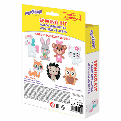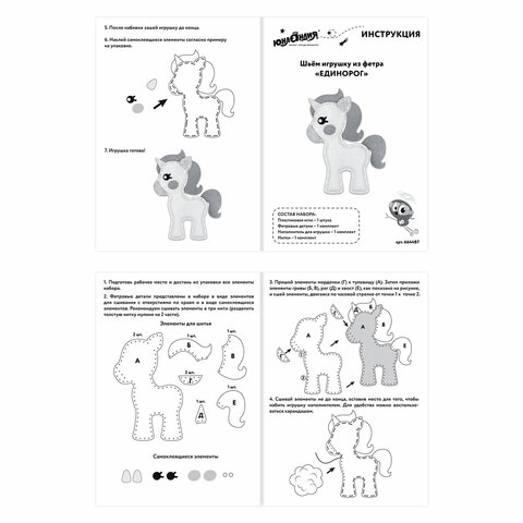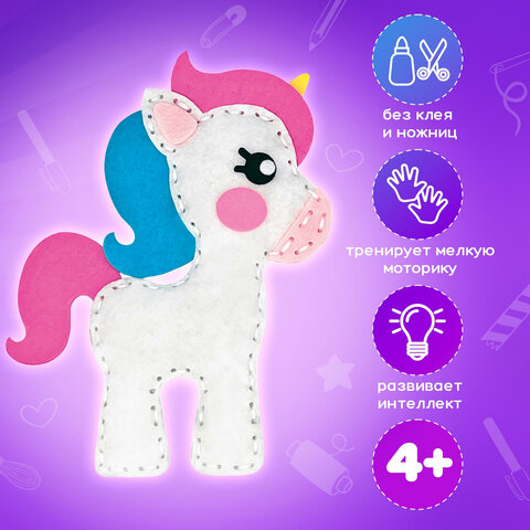 Набор для шитья игрушки из фетра "Единорог", ЮНЛАНДИЯ, 664487