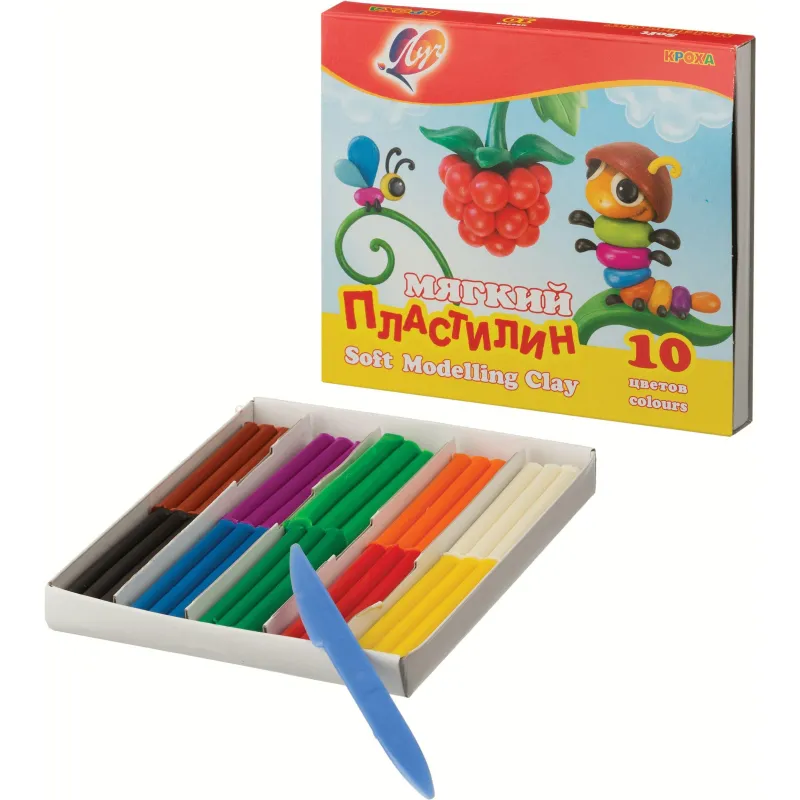 Пластилин 10цв,Кроха,165гр,со стеком