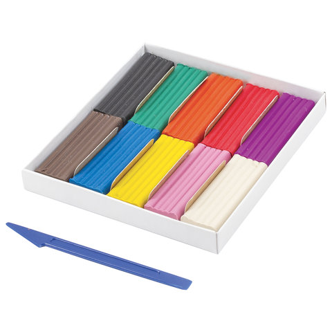 Пластилин классический BRAUBERG "АКАДЕМИЯ", 10 цветов, 200 г, со стеком, картонная упаковка, 103255