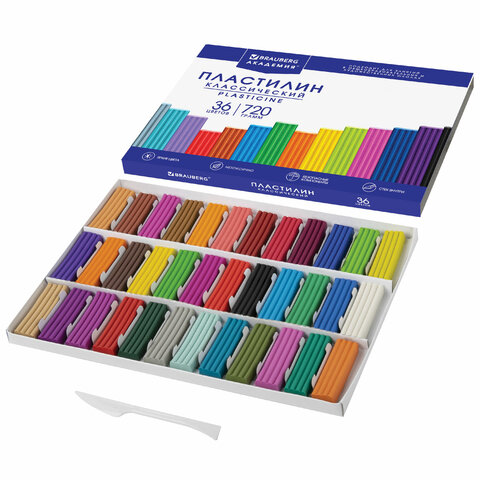 Пластилин классический BRAUBERG "АКАДЕМИЯ КЛАССИЧЕСКАЯ", 36 цветов, 720 г, СТЕК, ВЫСШЕЕ КАЧЕСТВО