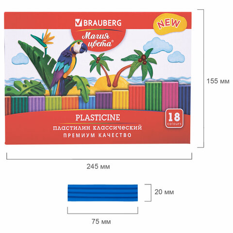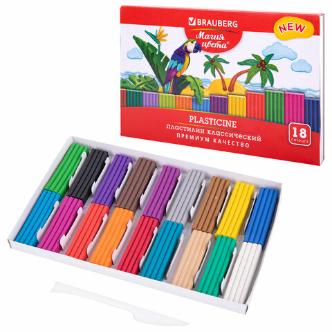 Пластилин классический BRAUBERG "МАГИЯ ЦВЕТА NEW", 18 цветов, 360 грамм, стек, ВЫСШЕЕ КАЧЕСТВО, 1064