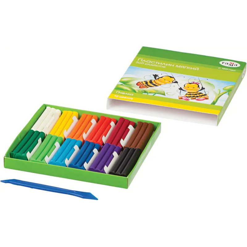 Пластилин классический Гамма Пчелка 12 цветов со стеком 180 г