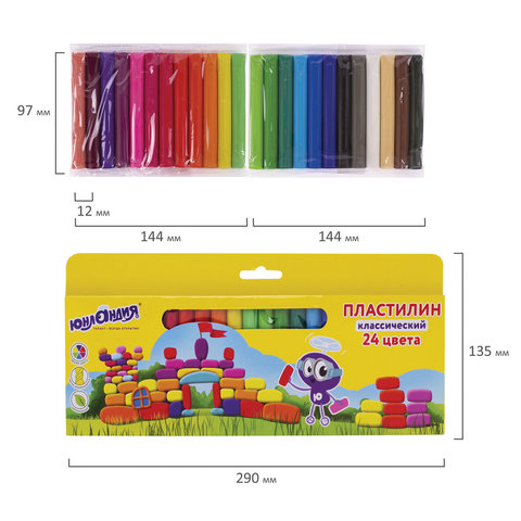 Пластилин классический ЮНЛАНДИЯ "ЮНЛАНДИК-АРХИТЕКТОР", 24 цвета, 480 г, ВЫСШЕЕ КАЧЕСТВО, 105031