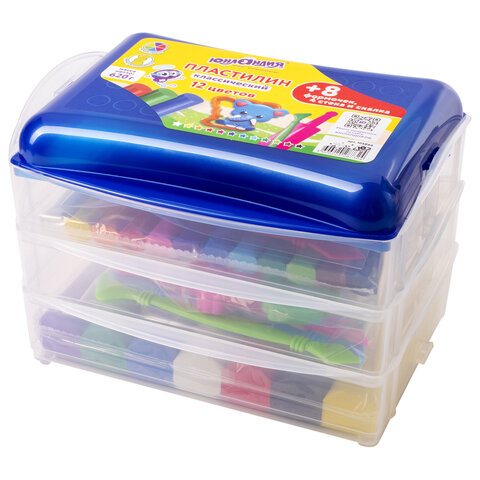 Пластилин в боксе ЮНЛАНДИЯ "ЮНЛАНДИК В ЗООПАРКЕ", 12 цветов, 620 г, скалка, 4 стека, 8 формочек, 105