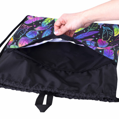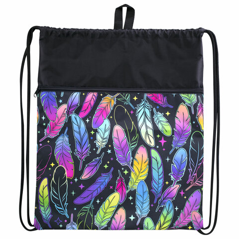 Мешок для обуви BRAUBERG БОЛЬШОЙ, с ручкой, карман на молнии, сетка, 49х41 см, "Feathers", 271057