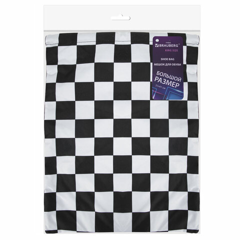 Мешок для обуви BRAUBERG большой удобный с ручкой, 51х41 см, "Black and white", 271595