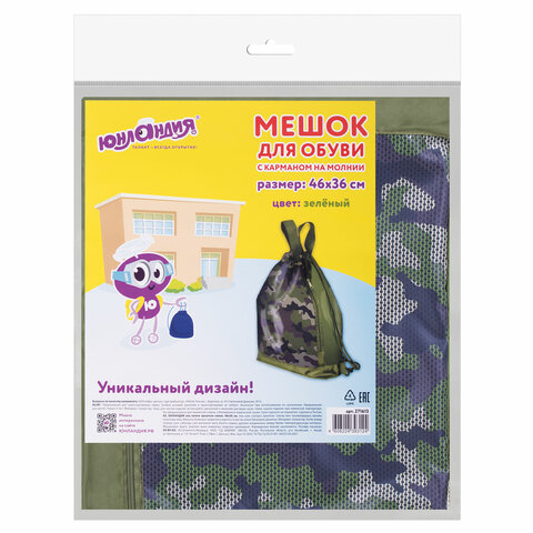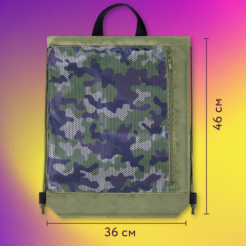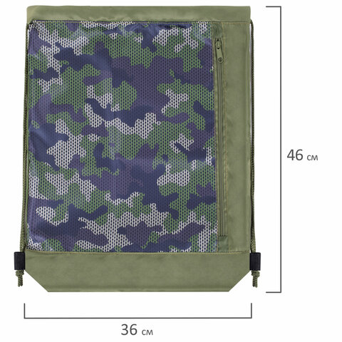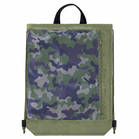 Мешок для обуви ЮНЛАНДИЯ, с ручками, боковой карман на молнии, 46х36 см, "Camo Mode", 271613