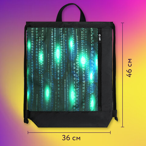 Мешок для обуви ЮНЛАНДИЯ, с ручками, боковой карман на молнии, 46х36 см, "Matrix", 271068