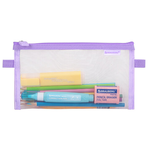 Пенал-конверт BRAUBERG, сетка, 22x10 см, фиолетовый