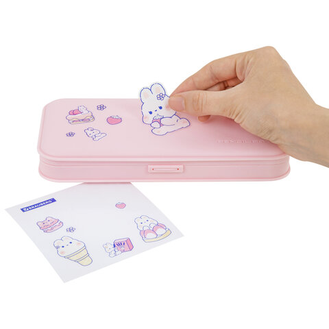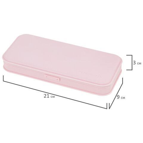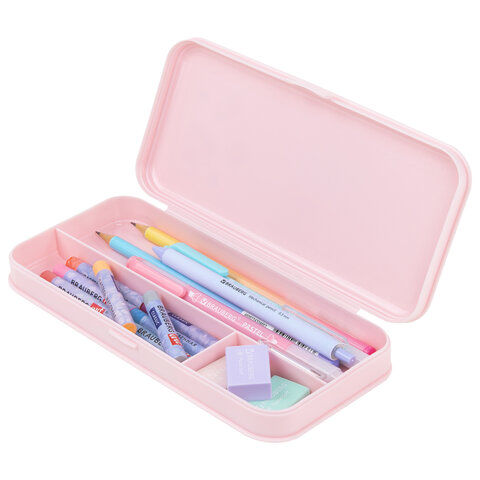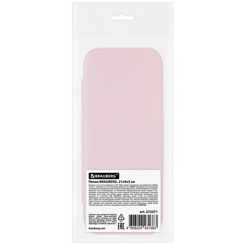 Пенал пластиковый BRAUBERG, пастельный розовый, наклейки в комплекте, 21х9х3 см, 272271
