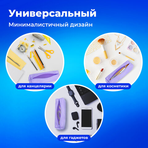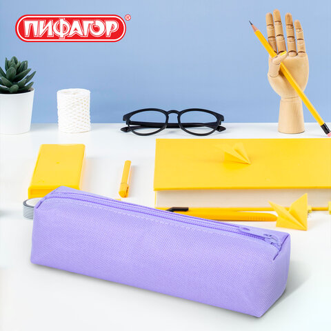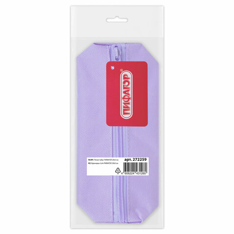 Пенал-тубус ПИФАГОР на молнии, ткань, пастельно-фиолетовый, 20х5 см