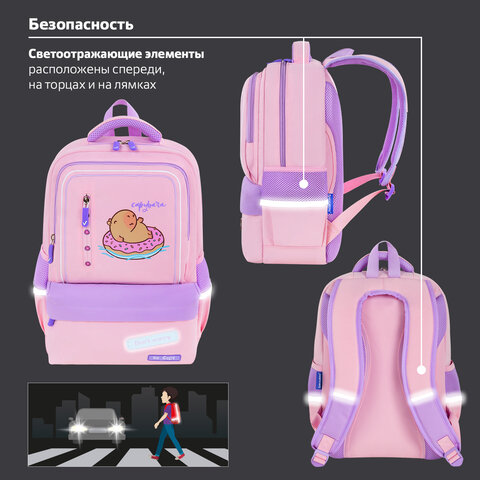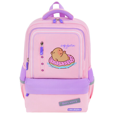 Рюкзак BRAUBERG STAR, 1 отделение, 5 карманов, "Capybara", розовый, 40x29x13 см, 272062