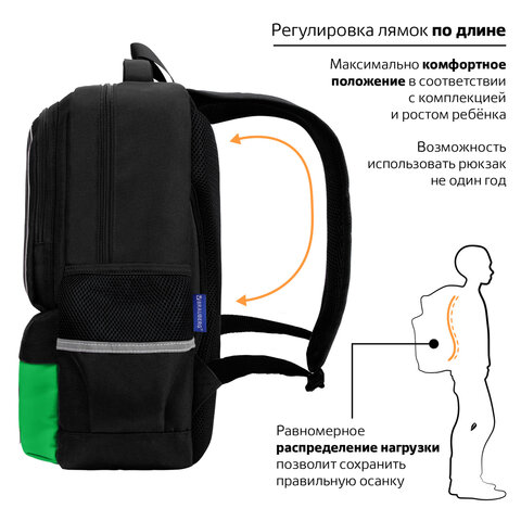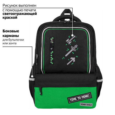 Рюкзак BRAUBERG STAR, 1 отделение, 5 карманов, "Digital tools", черный, 40x29x13 см, 273133