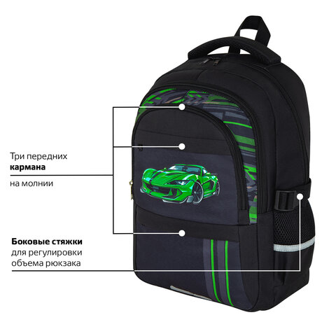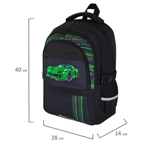 Рюкзак BRAUBERG VIBE, 2 отделения, 5 карманов, "Green car", 40х28х14 см, 272088