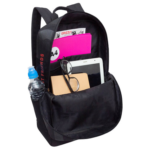 Рюкзак GRIZZLY, карман-антивор, "TOTAL BLACK", 42х28х12 см, RQL-513-2/3