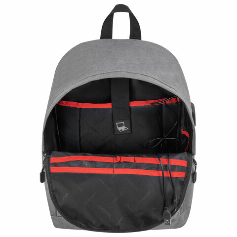 Рюкзак HEIKKI ACTIVE (ХЕЙКИ) универсальный, отделение для ноутбука, USB-порт, серый, 44х31х14 см, 272561