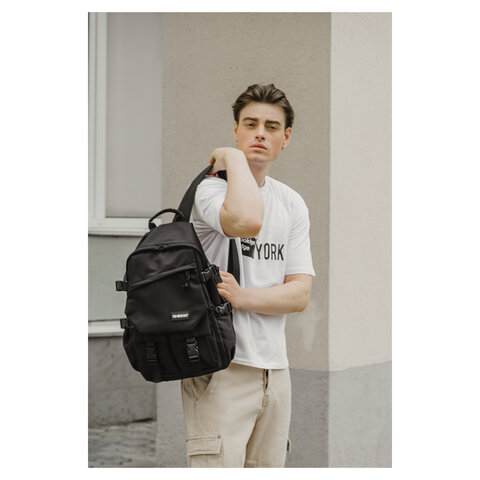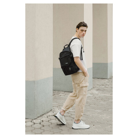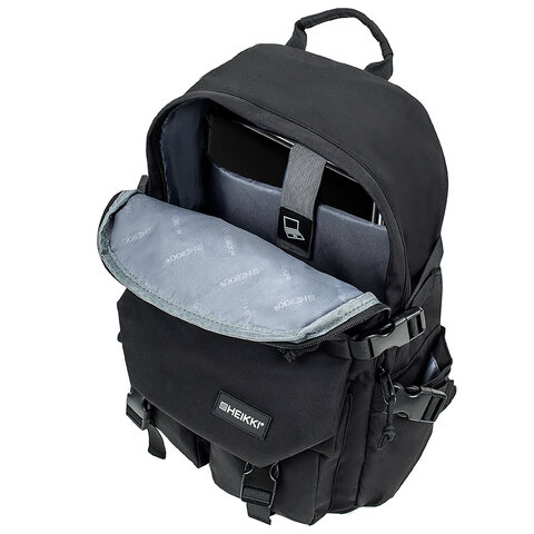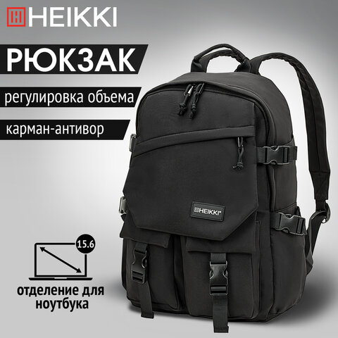 Рюкзак HEIKKI FUSION (ХЕЙКИ) универсальный, отделение для ноутбука, карман-антивор, черный, 43х30х14
